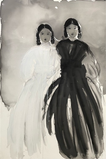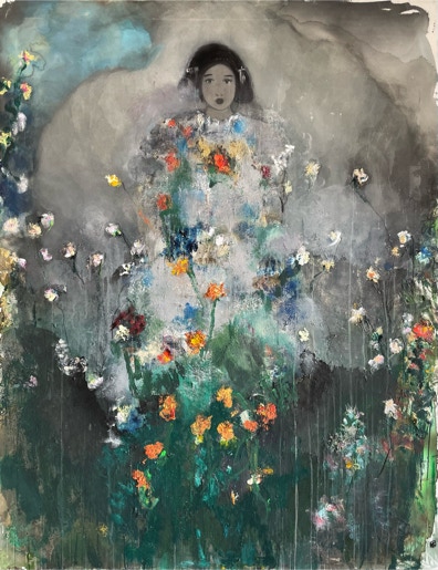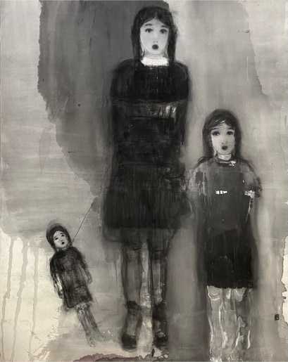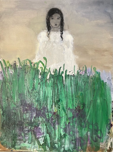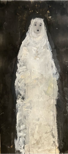 L’oeuvre de Katia Krief est une énigme. L’artiste peint de silencieuses figures féminines plongées dans d’inaccessibles pensées, d’élégantes silhouettes d’une infinie candeur. De la toile émane une mélancolie tranquille. Fidèle à sa recherche, elle mêle les fondus, les aplats et les matières. Elle joue subtilement avec les coulées d’encre et le brou de noix. L’atmosphère est fragile et lunaire, vibrante et empreinte de rêverie.